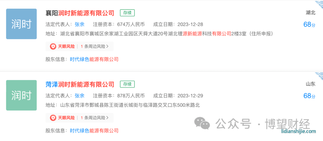 其中,2023年12月29日,菏澤潤時新能源有限公司注冊成立,注冊資本878萬元人民幣,法定代表人張余。經營范圍包括:發電業務、輸電業務、供(配)電業務;熱力生產和供應;新興能源技術研發;太陽能發電技術服務;合同能源管理等。