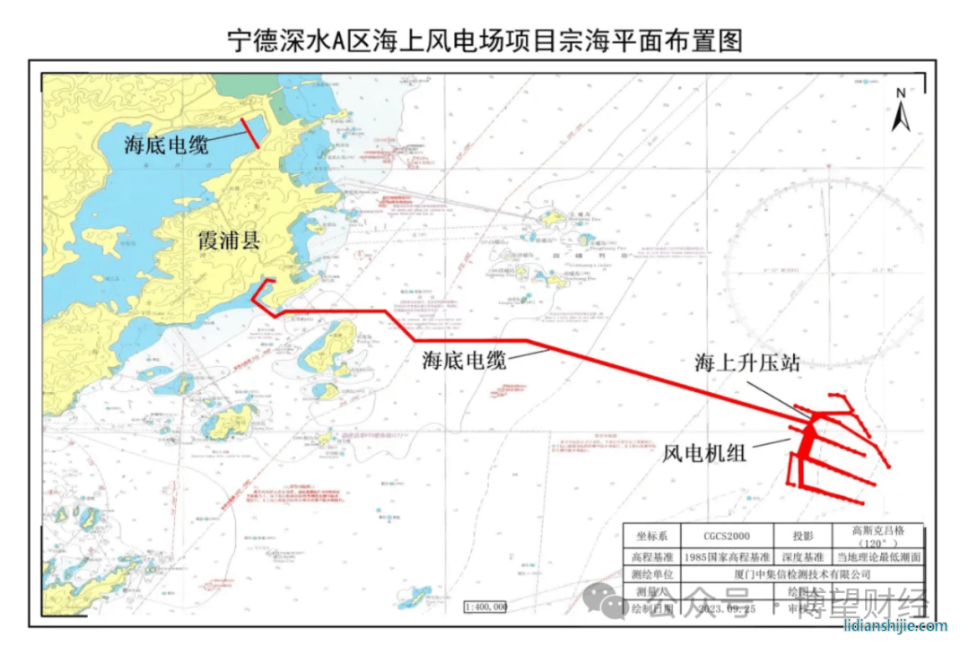 這個項目的建設背景是,寧德市自然資源局發布了《關于寧德深水A區海上風電場項目海域使用論證報告的公示》。根據公示,這一總投資額高達104.63億元的海上風電項目,位于寧德市霞浦縣東側海域。場址中心離岸距離約51km,理論水深約46~53m,規劃容量800MW,擬安裝59臺單機容量13.6MW風力發電機組,總裝機容量為802.4MW,配套建設1座500KV海上升壓站,工程建設總工期為29個月。